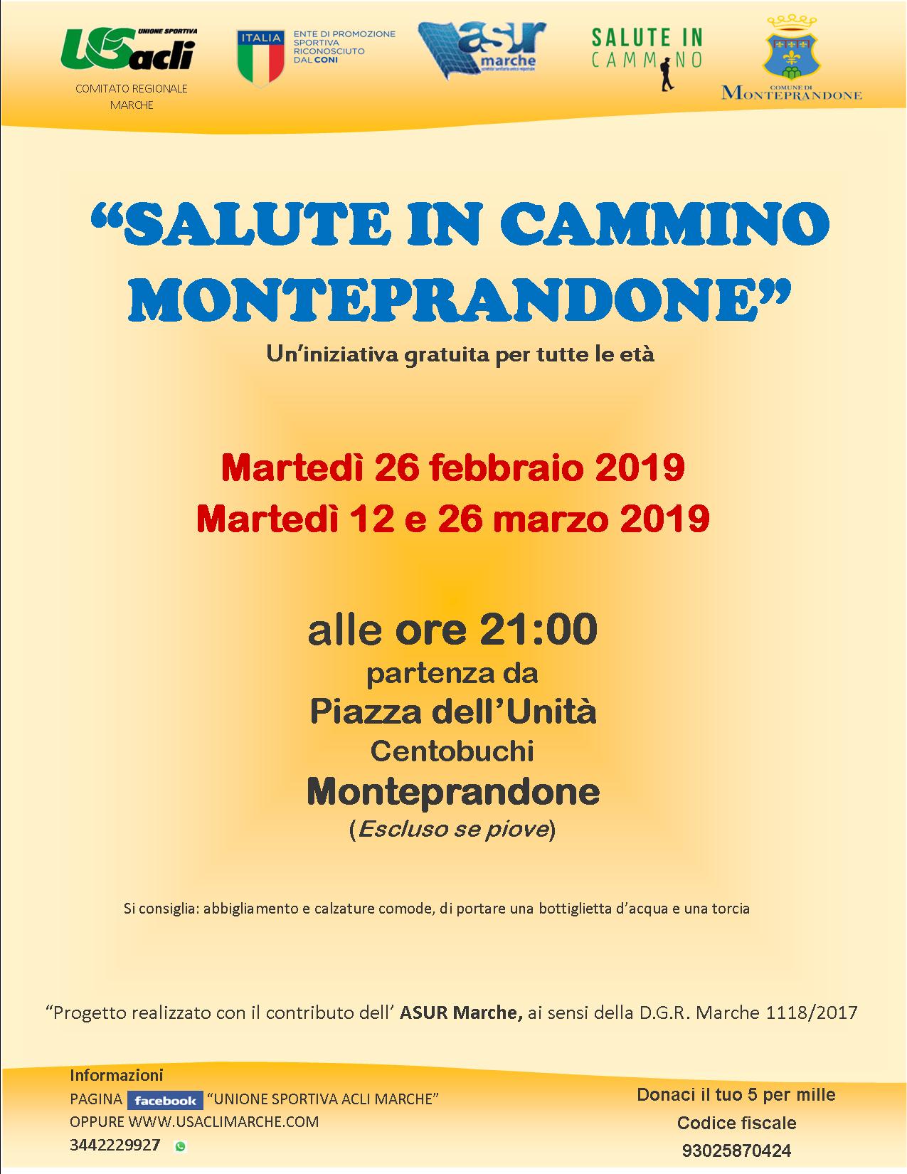 MONTEPRANDONE – Dopo la pausa natalizia, di fine ed inizio anno, martedì 26 febbraio riprenderà il progetto “Salute in cammino” con appuntamento a Centobuchi in piazza dell’unità alle 21.