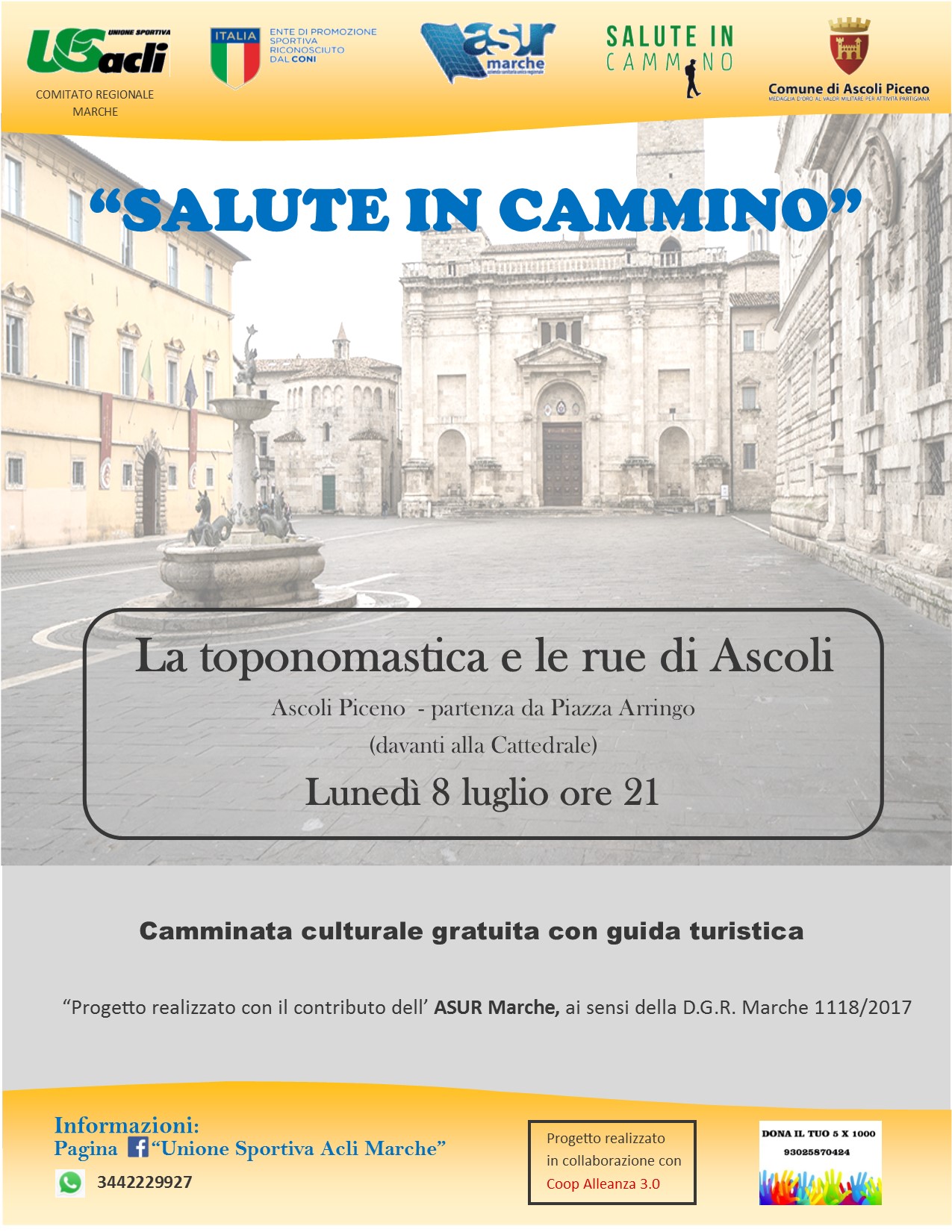 ASCOLI – Sta proseguendo, con una buona partecipazione di pubblico, il progetto “Sport senza età” che prevede nel periodo estivo ogni lunedì una camminata culturale con partenza da Piazza Arringo alle 21.