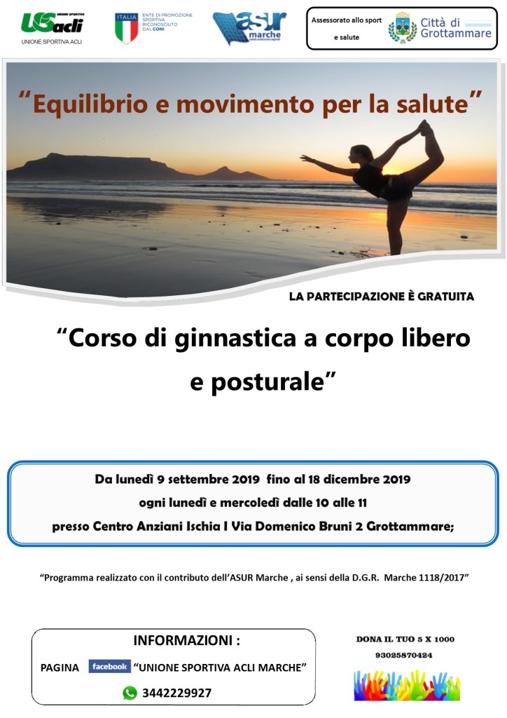 GROTTAMMARE – Dopo l’attività estiva in spiaggia e dopo una settimana di sosta, lunedì 9 settembre riprenderà il progetto “Equilibrio e movimento per la salute”.