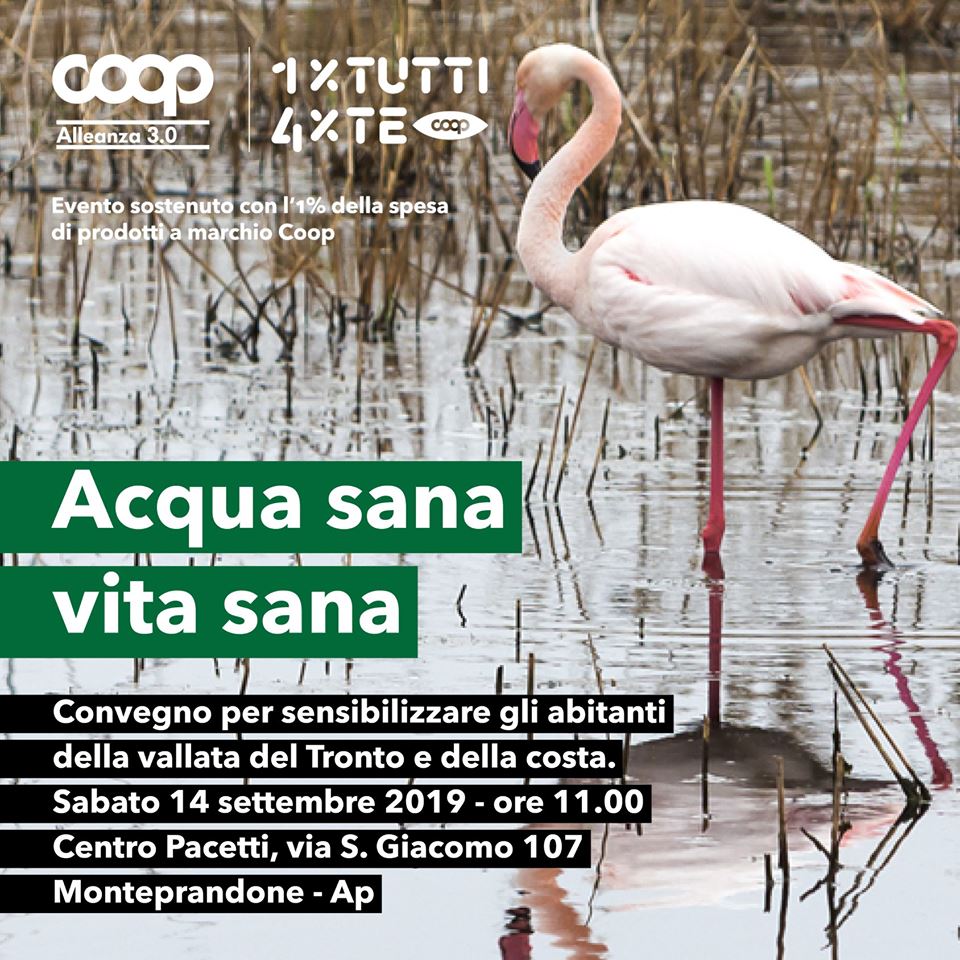via S. Giacomo 107, Monteprandone (AP), si terrà il Convegno dal titolo “Acqua sana. Vita sana”, un momento di incontro e riflessione condivisa circa la valorizzazione del Fiume Tronto e l’impatto che riveste sulla salute e il benessere della comunità picena che risiede lungo le sue sponde. L’incontro sarà animato da due esperti in materia: