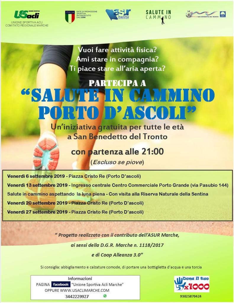 SAN BENEDETTO DEL TRONTO – Venerdì 13 settembre alle 21, con partenza dall’ingresso principale del Centro commerciale Porto Grande, prenderà il via un nuovo appuntamento con l’iniziativa gratuita “Salute in cammino”.