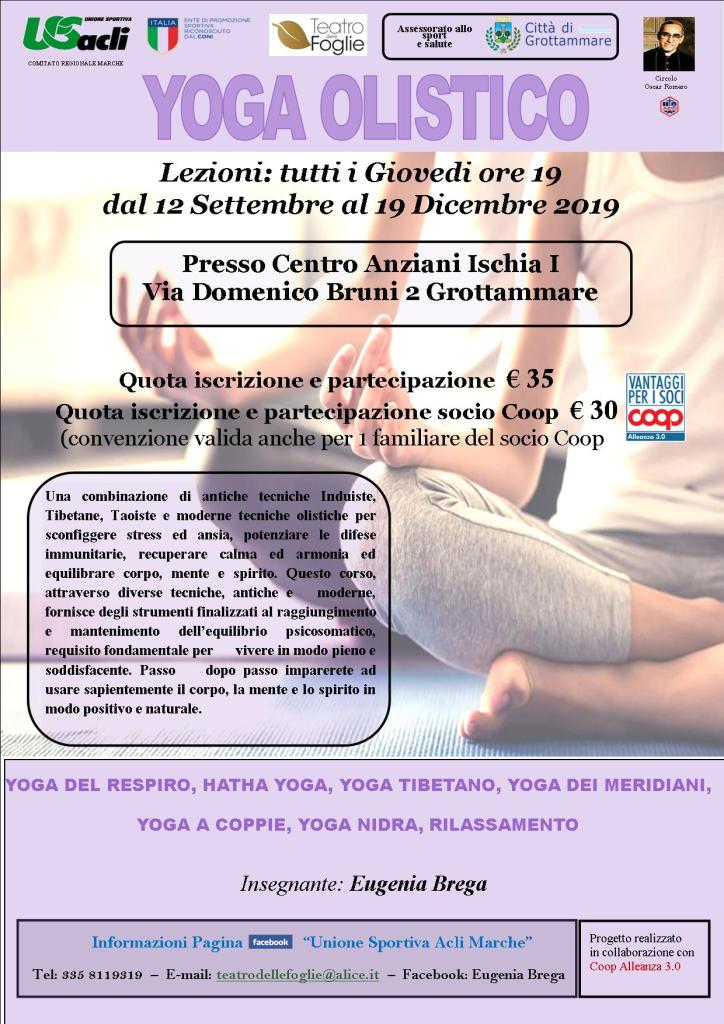 L’iniziativa nasce dalla collaborazione tra Circolo Acli ASD APS Romero, Teatro delle foglie, U.S. Acli Marche, Coop Alleanza 3.0, Assessorato allo sport ed alla salute del Comune di Grottammare-e prevede lezioni di yoga del respiro, hatha yoga, yoga tibetano, yoga dei meridiani, yoga a coppie, yoga nidra e rilassamento.