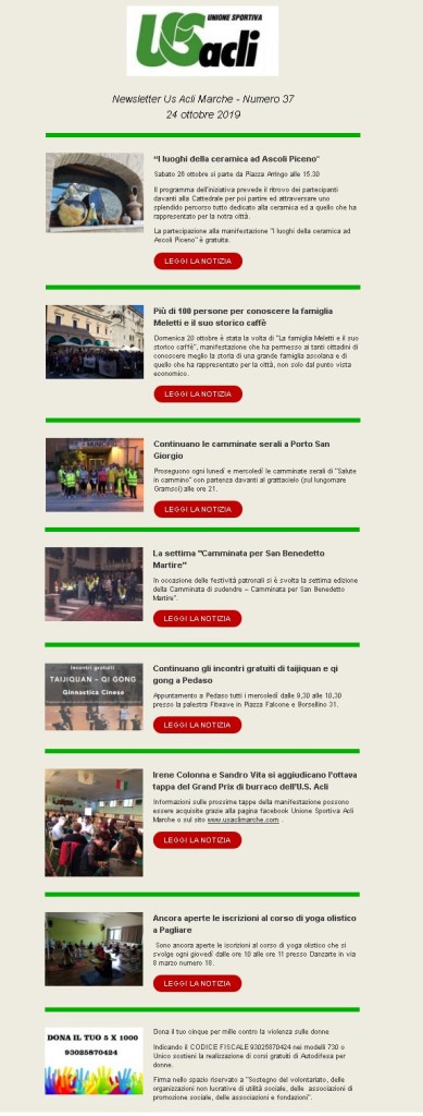 ottobre 24, 2019 Unione Sportiva Acli Marche Newsletter n.37 del 24 Ottobre 2019 Condividi: Condividi su X (Si apre in una nuova finestra) X Condividi su Facebook (Si apre in una nuova finestra) Facebook Mi piace Caricamento... Correlati