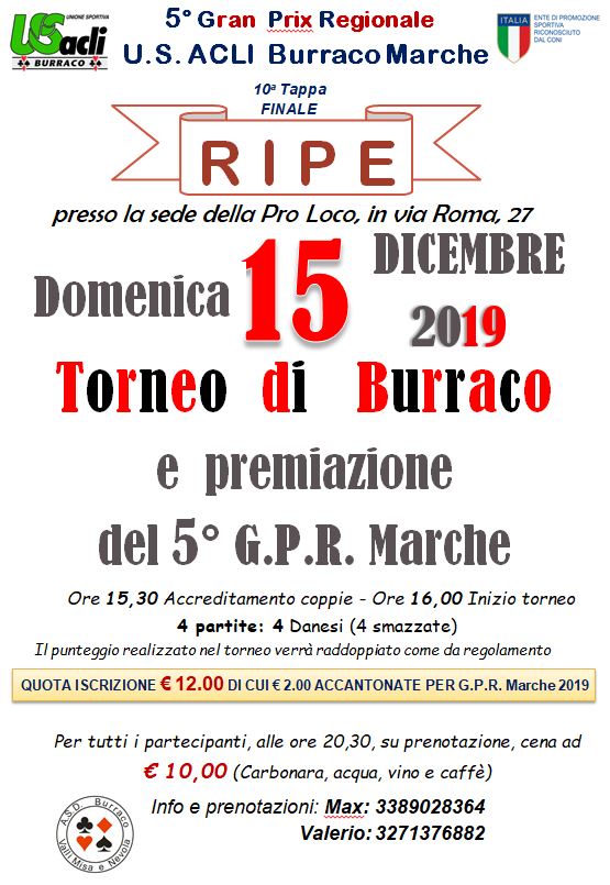 Ripe di Trecastelli – Si avvia alla conclusione il Grand prix regionale di burraco dell’U.S. Acli.