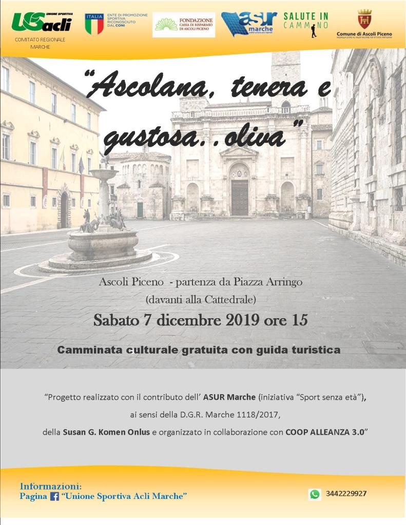 ASCOLI – Dopo i precedenti rinvii causa maltempo, si svolgerà sabato 7 dicembre l’iniziativa “Ascolana, tenera e gustosa oliva” che è organizzata dall’Unione Sportiva Acli Marche nell’ambito del progetto “Sport senza età”.