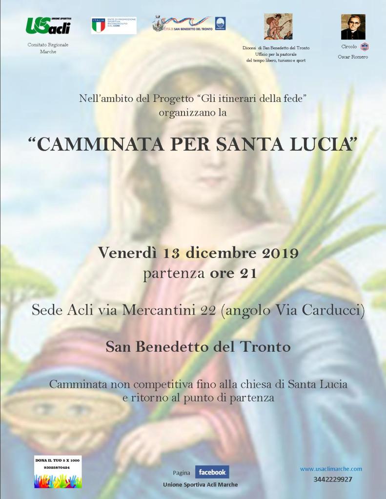 SAN BENEDETTO DEL TRONTO – In occasione di una festività tanto cara ai cittadini sambenedettesi, venerdì 13 dicembre si svolgerà la “Camminata per Santa Lucia”.