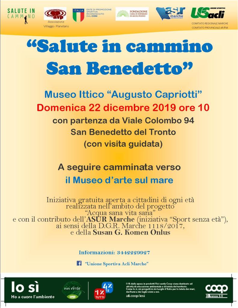 SAN BENEDETTO DEL TRONTO – Domenica 22 dicembre, alle ore 10, si svolgerà l’iniziativa “Salute in cammino San Benedetto” con visita gratuita al Museo Ittico “Augusto Capriotti”.