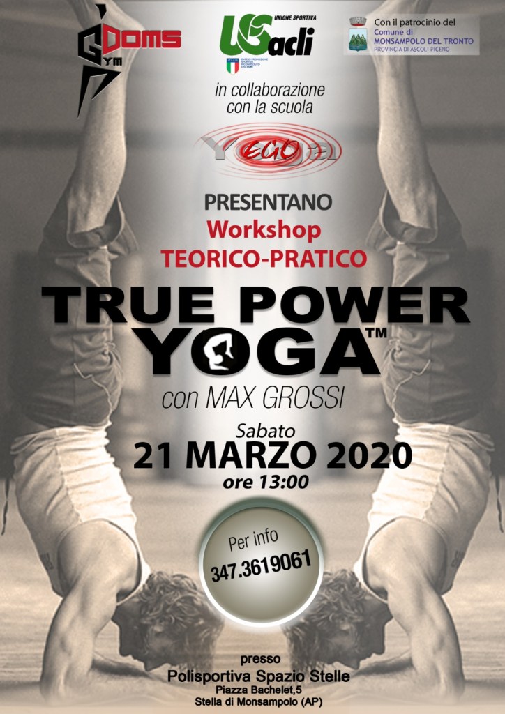 MONSAMPOLO DEL TRONTO – Sono già aperte le iscrizioni al “True Power Yoga Workshop” che si svolgerà Sabato 21 marzo alle ore 13 in Piazza Bachelet 5.