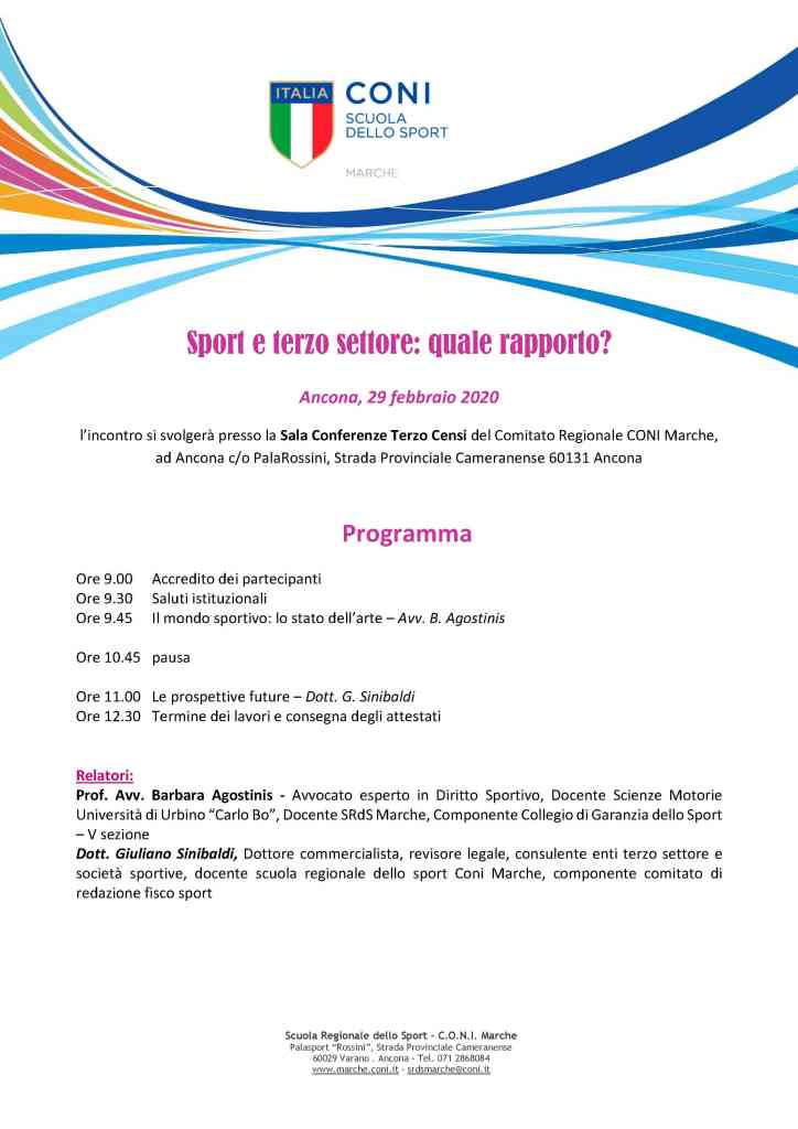 l’incontro si svolgerà presso la Sala Conferenze Terzo Censi del Comitato Regionale CONI Marche, ad Ancona c/o PalaRossini, Strada Provinciale Cameranense 60131 Ancona