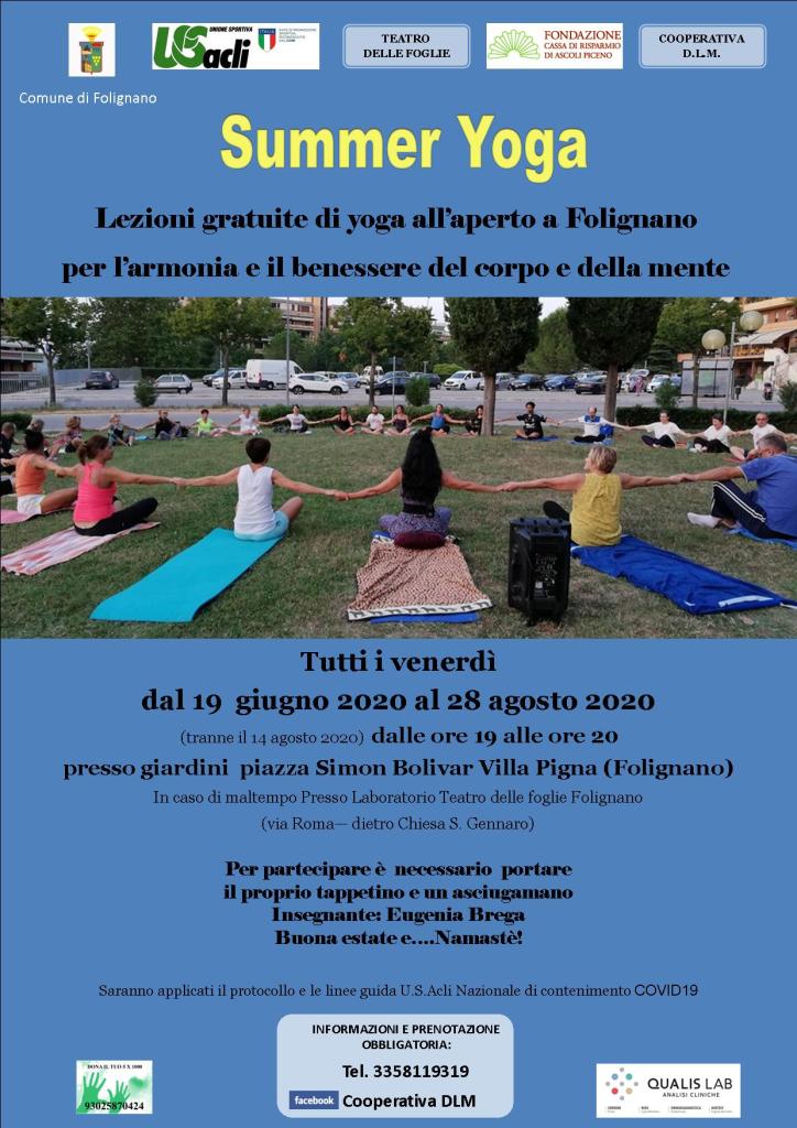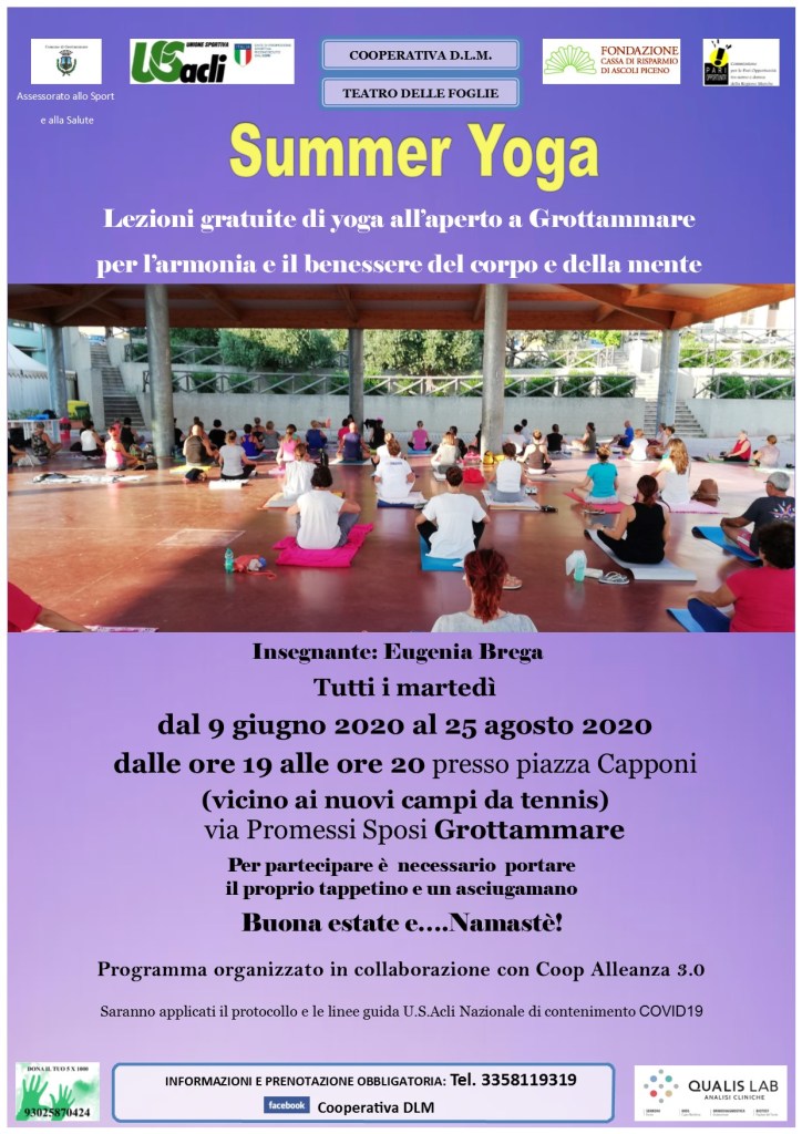 Tutto pronto per la terza edizione di “Summer Yoga”, iniziativa che rientra nel progetto “Laboratori territoriali di prevenzione del tumore al seno” realizzato negli anni 2018 e 2019 nel territorio delle province di Ascoli e Teramo su iniziativa della Cooperativa DLM. A partire da lunedì 8 giugno, a San Benedetto del Tronto, Grottammare, Folignano, Ascoli e Monsampolo sono previste lezioni gratuite di yoga tenute dall’insegnante Eugenia Brega. “Summer Yoga” ha avuto un notevole riscontro nelle due precedenti edizioni come testimoniano le persone coinvolte che sono state 252 nell’anno 2019 e 301 nell’anno 2018. Sono tanti i benefici fisici della pratica di questa attività, come dimostrato da sempre maggiori studi scientifici. Lo yoga, ad esempio, migliora l’elasticità muscolare e l’equilibrio, rieduca la colonna vertebrale, è utile per alleviare i dolori alla cervicale, la circolazione viene agevolata ed il sistema immunitario si irrobustisce. Non va dimenticato, poi, che si tratta di una disciplina psicofisica ossia che c’è una forte integrazione tra mente e corpo che aiuta, ad esempio, a superare blocchi legati all’emotività. Uno studio del Centro statunitense per la medicina alternativa e complementare di Bethesda, in Maryland, ha evidenziato che la pratica dello yoga è associata alla comparsa di nuovi neuroni, come dimostra l’aumento di volume della materia grigia in alcune aree chiave del cervello. Una revisione di studi pubblicata su Frontiers in Psychiatry, invece, ha evidenziato che lo yoga produrrebbe inoltre effetti benefici anche sui principali disturbi psichiatrici, con effetti positivi anche sui sintomi della depressione e sui disturbi del sonno. Il progetto “Summer Yoga” viene realizzato in collaborazione con il Teatro delle foglie e con l’U.S. Acli Marche, col patrocinio e sostegno delle amministrazioni comunali di Grottammare e Folignano e della Commissione per le pari opportunità tra uomo e donna della Regione Marche, col contributo di Coop Alleanza 3.0 e Fondazione Carisap. Per le informazioni e per le preiscrizioni (obbligatorie per assicurare il rispetto dei protocolli di sicurezza per contrastare il Covid) si possono contattare l’insegnante Eugenia Brega al numero 3358119319 o consultare la pagina facebook della Cooperativa DLM nella quale saranno pubblicati i giorni e gli orari di svolgimento delle varie lezioni di yoga.