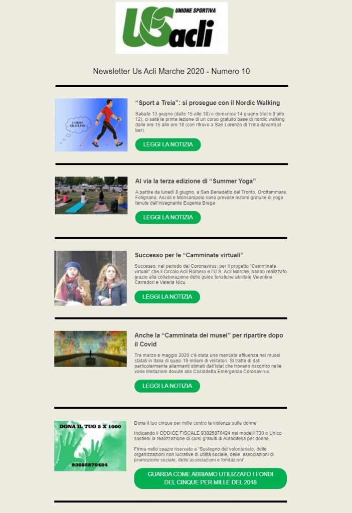 giugno 12, 2020 Unione Sportiva Acli Marche Newsletter n. 10 del 4 giugno 2020 Condividi: Condividi su X (Si apre in una nuova finestra) X Condividi su Facebook (Si apre in una nuova finestra) Facebook Mi piace Caricamento... Correlati