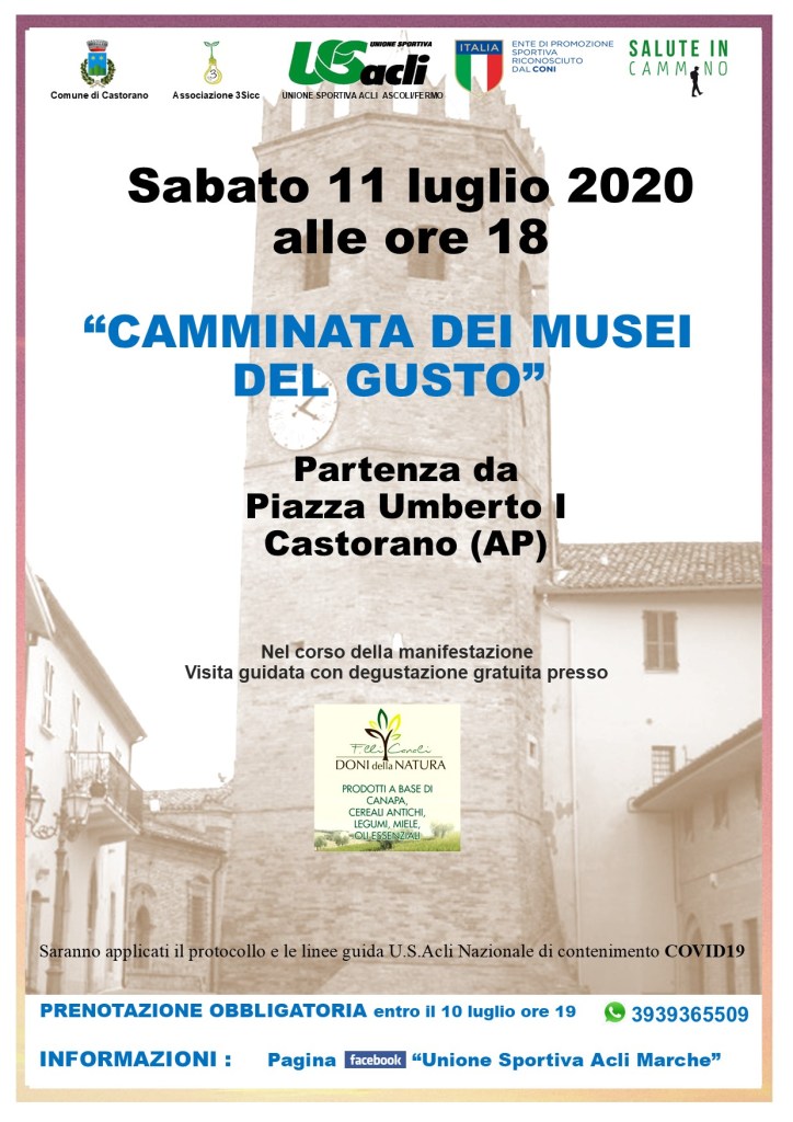 L’iniziativa è promossa da U.S. Acli provinciale Ascoli/Fermo, Comune di Castorano e Associazione 3Sicc APS ed abbina la promozione dell’attività fisica con conoscenza e la valorizzazione dei prodotti dell’agricoltura marchigiana.