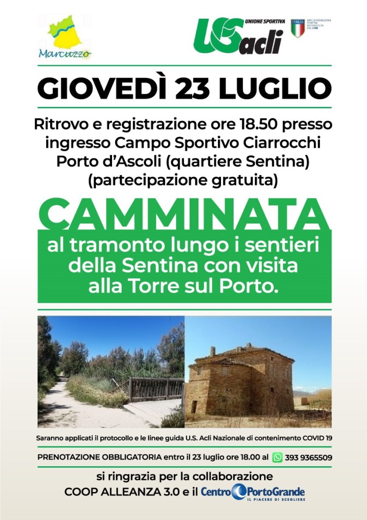 Alle 18,50, con ritrovo davanti all’ingresso del campo sportivo Ciarrocchi a Porto d’Ascoli (zona Sentina), è infatti in programma una camminata al tramonto lungo i sentieri della Sentina con visita alla Torre sul porto.