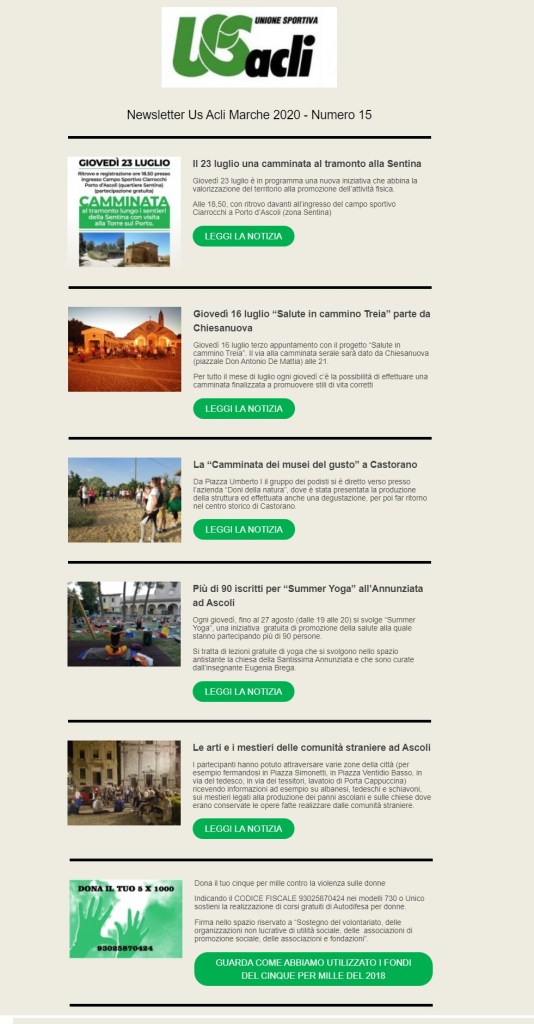 luglio 16, 2020 Unione Sportiva Acli Marche Newsletter n.15 del 16 luglio 2020 Condividi: Condividi su X (Si apre in una nuova finestra) X Condividi su Facebook (Si apre in una nuova finestra) Facebook Mi piace Caricamento... Correlati