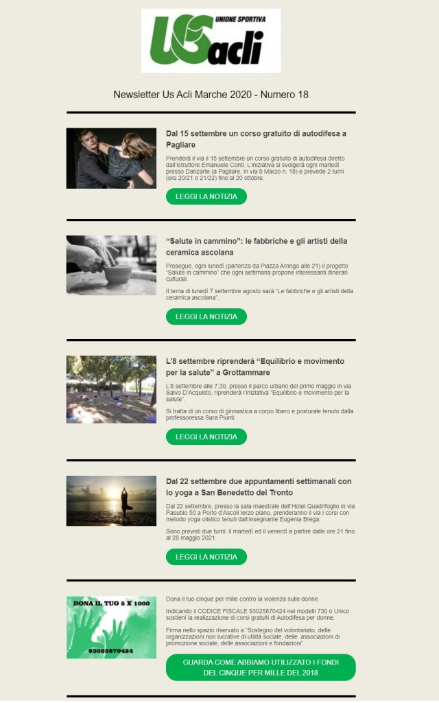 settembre 7, 2020 Unione Sportiva Acli Marche Newsletter n.18 del 4 settembre 2020 Condividi: Fai clic per condividere su X (Si apre in una nuova finestra) X Fai clic per condividere su Facebook (Si apre in una nuova finestra) Facebook Mi piace Caricamento... Correlati