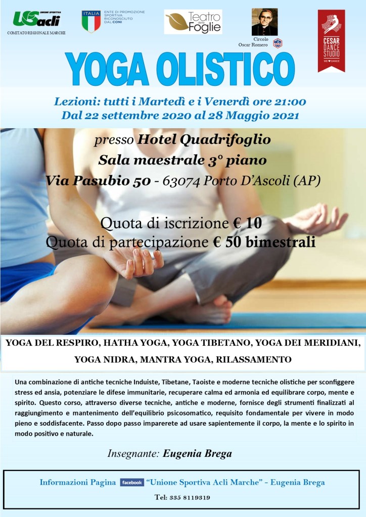 Proprio per questo dal 22 settembre, presso la sala maestrale dell’Hotel Quadrifoglio in via Pasubio 50 a Porto d’Ascoli terzo piano, prenderanno il via i corsi con metodo yoga olistico tenuti dall’insegnante Eugenia Brega.
