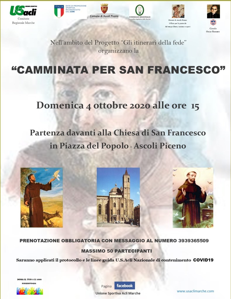 ASCOLI – In occasione di una festività tanto cara ai cittadini italiani, di cui è il patrono, domenica 4 ottobre si svolgerà la “Camminata per San Francesco”, camminata culturale aperta a persone di ogni età.