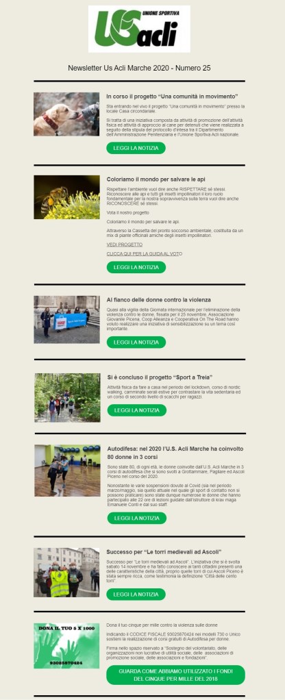 novembre 23, 2020 Unione Sportiva Acli Marche Newsletter n.25 del 23 novembre 2020 Condividi: Condividi su X (Si apre in una nuova finestra) X Condividi su Facebook (Si apre in una nuova finestra) Facebook Mi piace Caricamento... Correlati