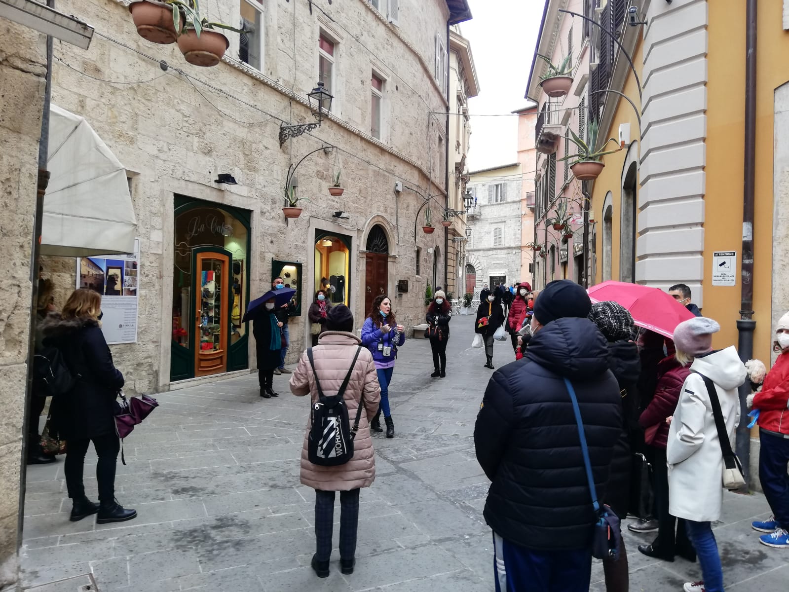 Da Piazza Arringo il gruppo infatti si è diretto in Piazza Roma, poi nella chiesa di San Venanzio, in Piazza Simonetti, nella zona nella quale era ubicato il ghetto ebraico ad Ascoli, per poi proseguire con Rua Enoch d’Ascoli, Rua degli albanesi, Via Giudea, Corso Mazzini e Rua del tedesco.