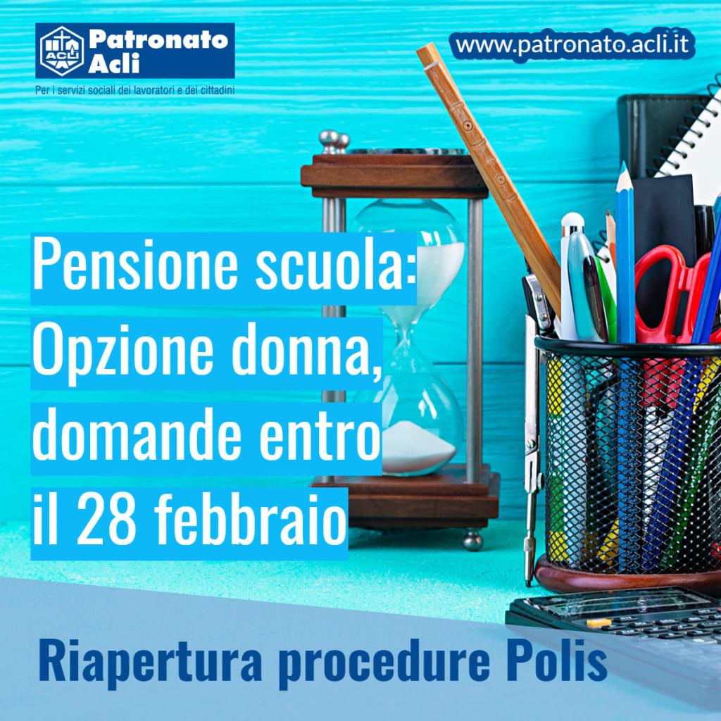 Il Ministero dell’Istruzione ha comunicato la riapertura della procedura POLIS per le dipendenti della scuola interessate ad andare in pensione usufruendo dell’ultima proroga di Opzione Donna. Le funzioni POLIS sono attive dal primo al 28 febbraio e nel corso di questo periodo si possono