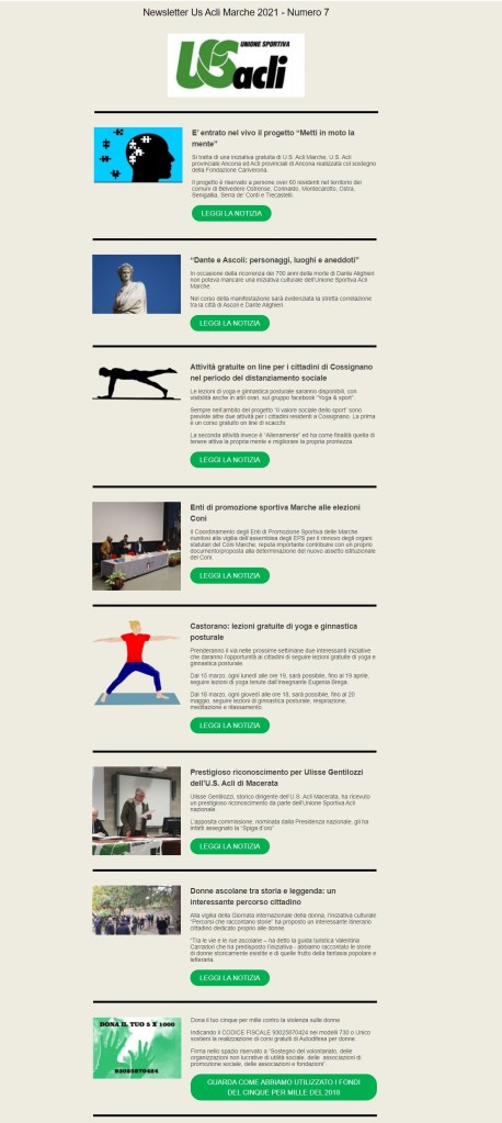 marzo 12, 2021 Unione Sportiva Acli Marche Newsletter n. 7 del 12 marzo 2021 Condividi: Fai clic per condividere su X (Si apre in una nuova finestra) X Fai clic per condividere su Facebook (Si apre in una nuova finestra) Facebook Mi piace Caricamento... Correlati