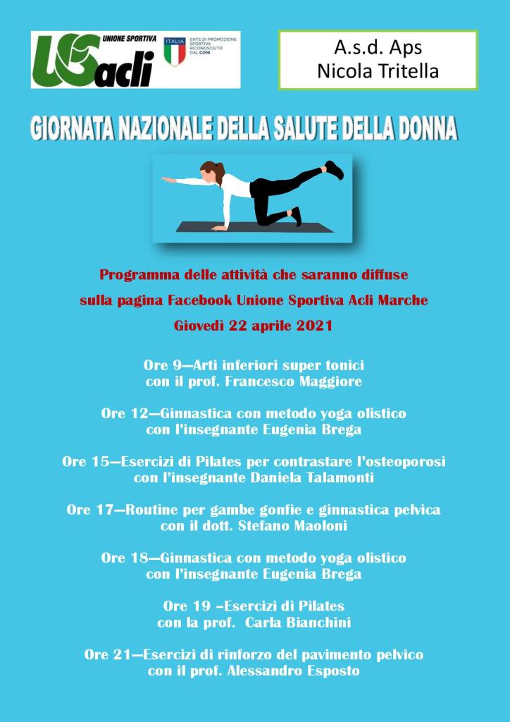 In occasione della Giornata nazionale della salute della donna, in programma, in programma per il 22 aprile, l’U.S. Acli Nicola Tritella ASD ha organizzato l’iniziativa “Salute e benessere”.