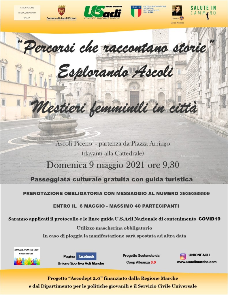 ASCOLI – Non poteva mancare, all’interno dell’iniziativa culturale “Percorsi che raccontano storie”, in prossimità del primo Maggio, una camminata dedicata ai mestieri femminili.