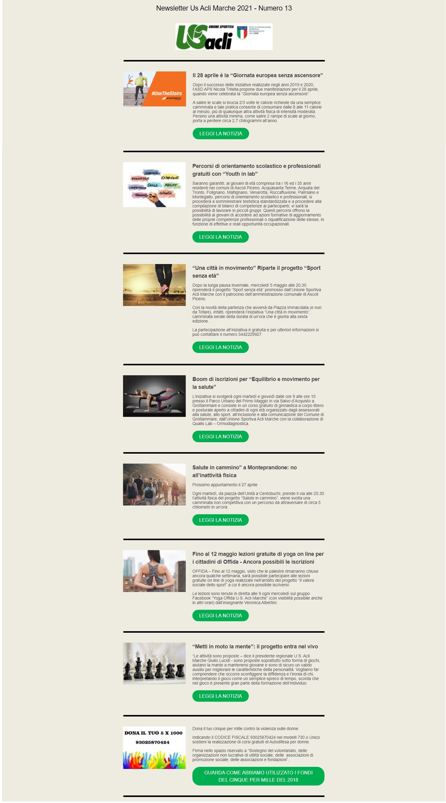 Maggio 7, 2021 Unione Sportiva Acli Marche Newsletter n. 13 del 27 aprile 2021 Condividi: Condividi su X (Si apre in una nuova finestra) X Condividi su Facebook (Si apre in una nuova finestra) Facebook Mi piace Caricamento... Correlati