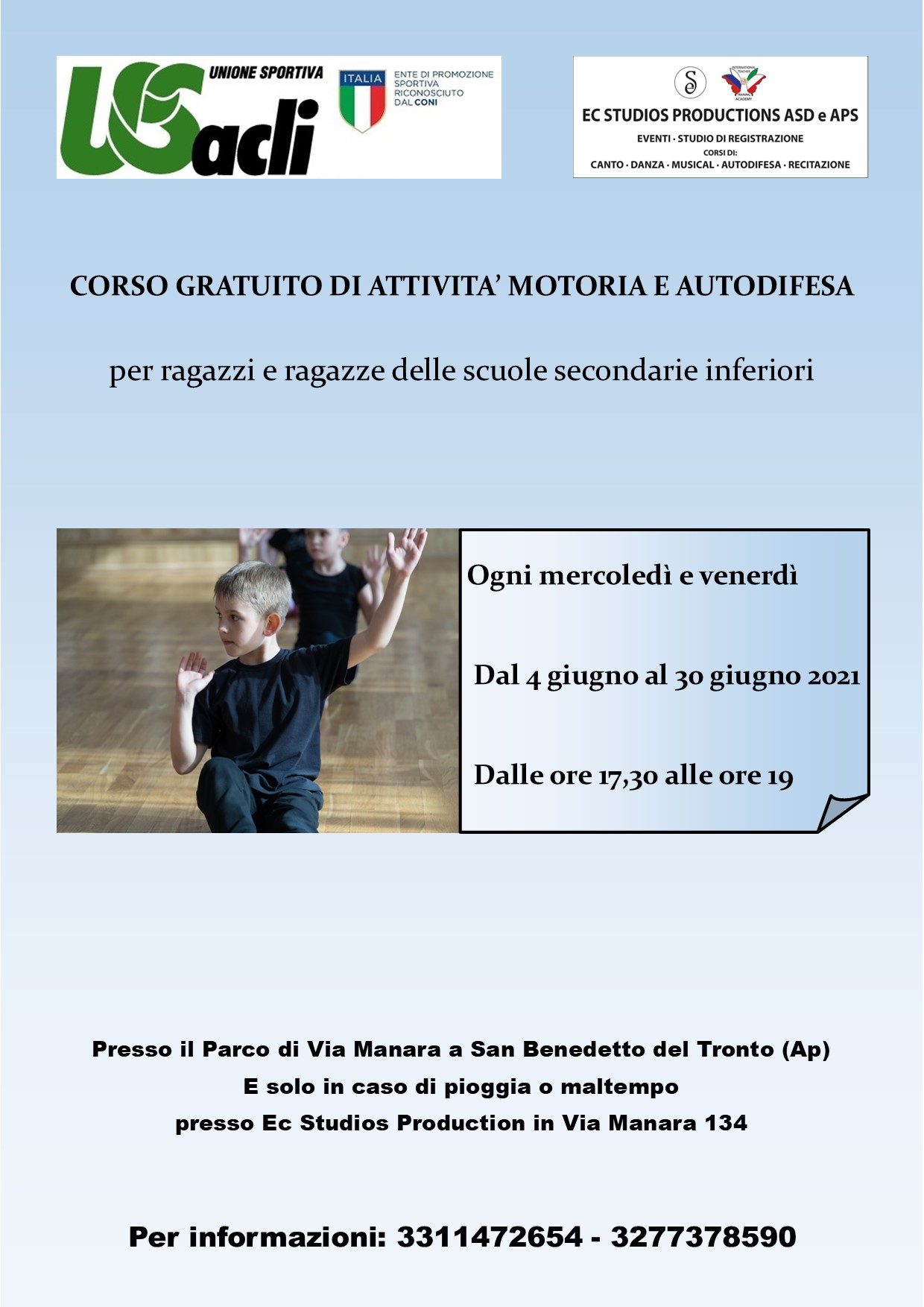 Per i ragazzi e le ragazze delle scuole secondarie inferiori fino al 30 giugno, ogni mercoledì e venerdì dalle ore 17,30 alle ore 19, si svolgerà un corso gratuito di attività motoria ed autodifesa.