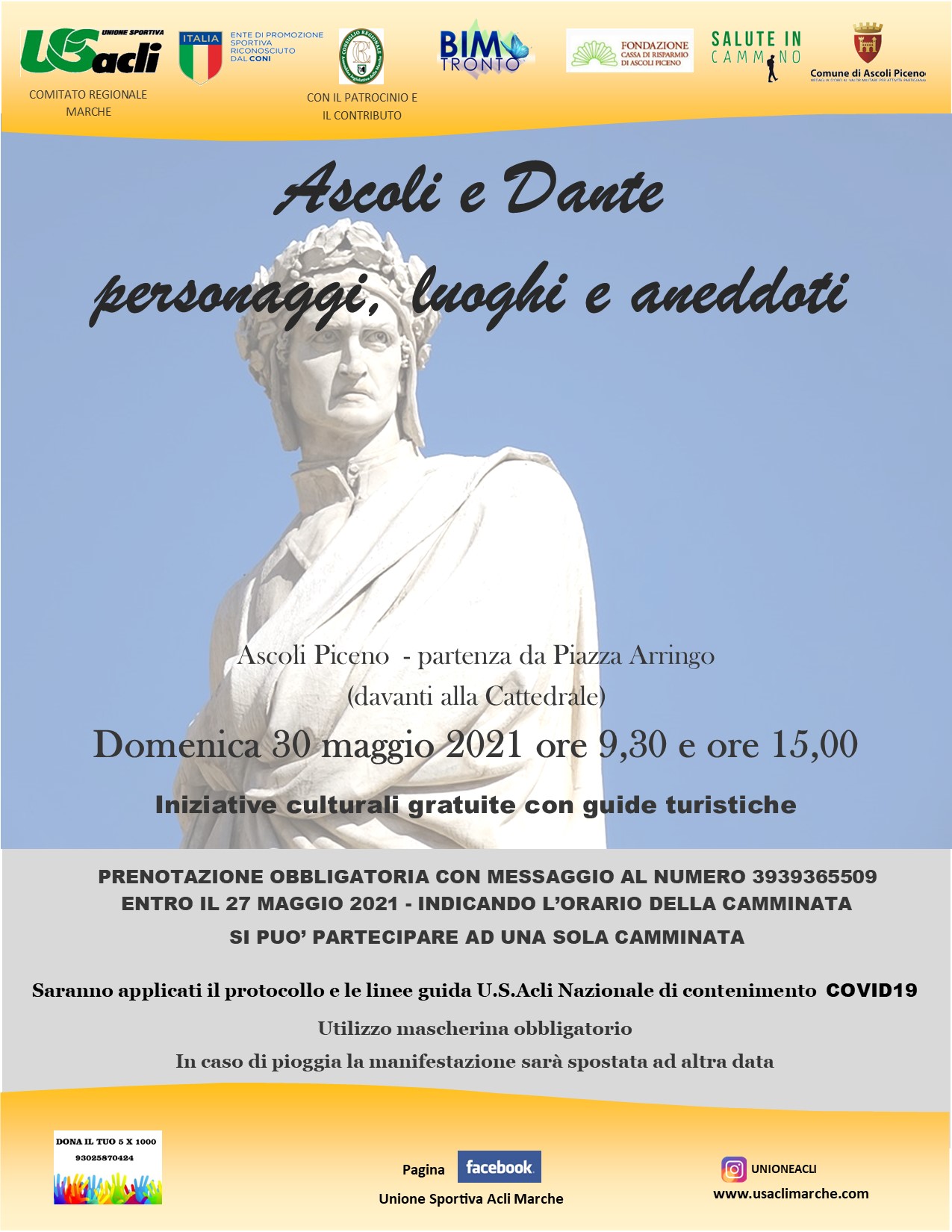 ASCOLI – In occasione della ricorrenza dei 700 anni della morte di Dante Alighieri non poteva mancare una iniziativa culturale dell’Unione Sportiva Acli Marche dedicata al Sommo Poeta.
