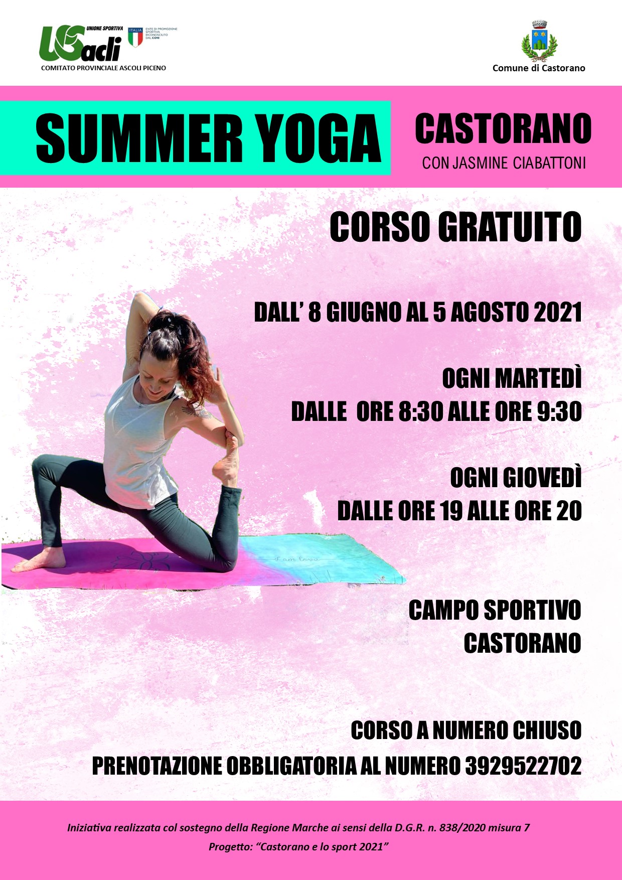 Dall’8 giugno al 5 agosto, ogni martedì dalle 8,30 alle 9,30 e ogni giovedì dalle ore 19 alle ore 20, si svolgerà invece un corso gratuito di yoga con l’insegnante Jasmine Ciabattoni.