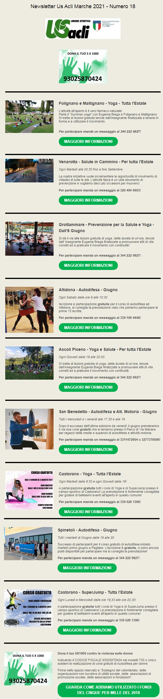 giugno 4, 2021giugno 4, 2021 Unione Sportiva Acli Marche Newsletter n, 18 del 4 Maggio 2021 Condividi: Condividi su X (Si apre in una nuova finestra) X Condividi su Facebook (Si apre in una nuova finestra) Facebook Mi piace Caricamento... Correlati
