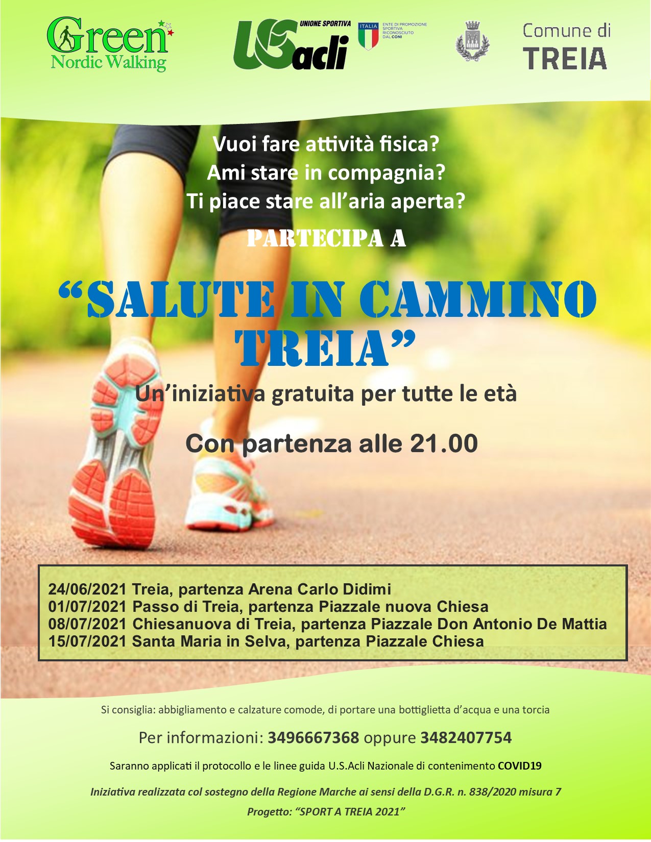 La seconda iniziativa programmata è “Salute in cammino a Treia”, ossia camminate serali per contrastare la vita sedentaria e l’inattività fisica adottando stili di vita corretti.