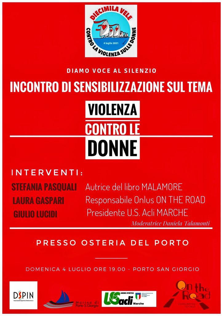 Domenica 4 luglio, alle ore 19.00, presso l’ Osteria De.lù. del Porto turistico di Porto San Giorgio, l’ Associazione sportiva Dspin presenterà un incontro di sensibilizzazione sul tema della violenza contro le donne.