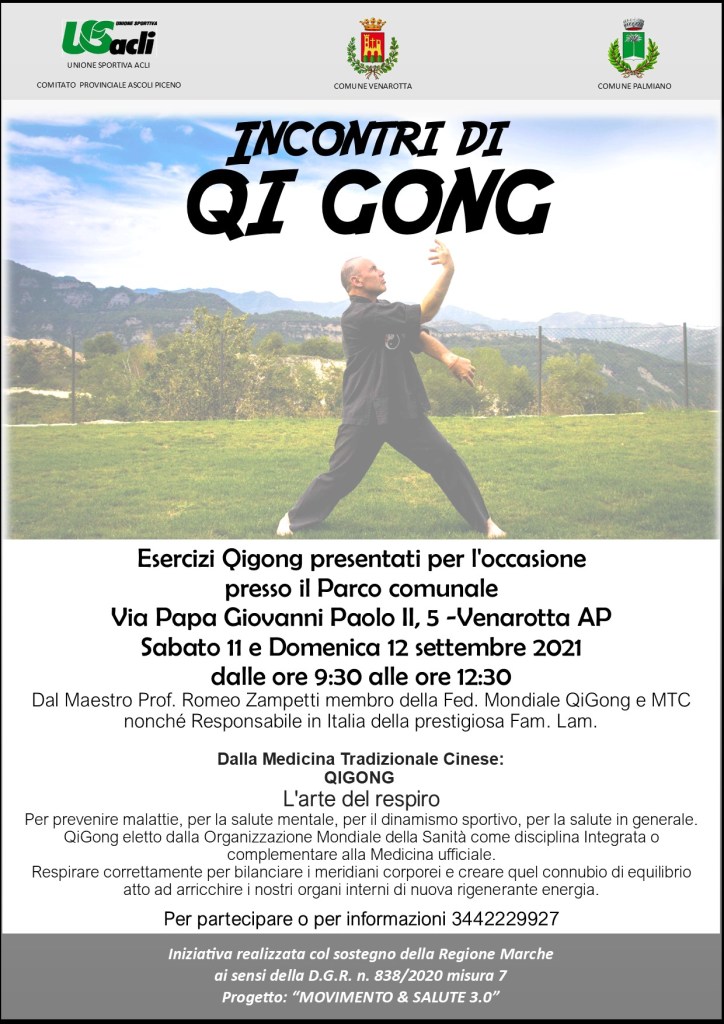 VENAROTTA – Sabato 11 e domenica 12 Settembre si svolgeranno due incontri gratuiti di Qi Gong.