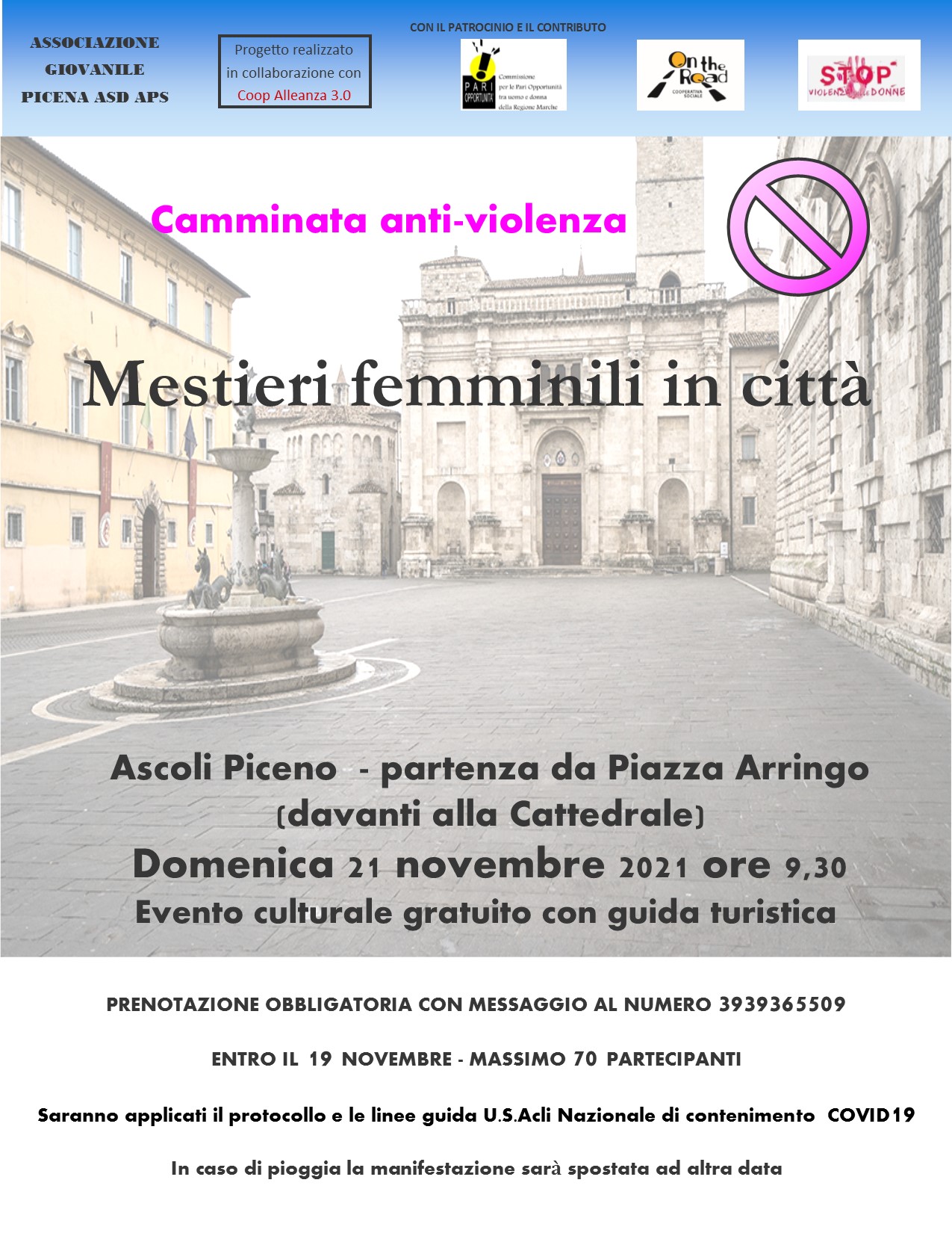 ASCOLI – “Mestieri femminili in città”. E’ questo il titolo di un evento culturale gratuito che si svolgerà domenica 21 novembre con partenza alle 9,30 da Piazza Arringo.
