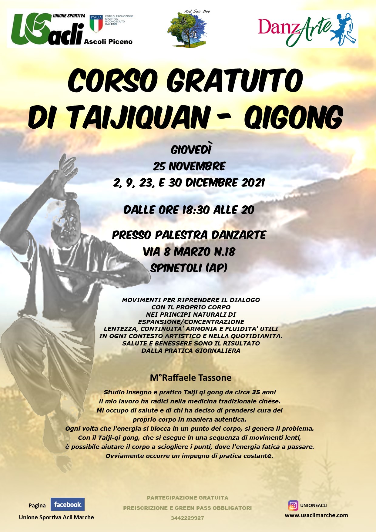 SPINETOLI –Dalla collaborazione tra U.S. Acli provinciale Aps, A.S.D. Sen Dao e Danzarte scaturisce un corso gratuito di Taijiquan – Qi gong che si svolgerà a partire da giovedì 25 novembre.