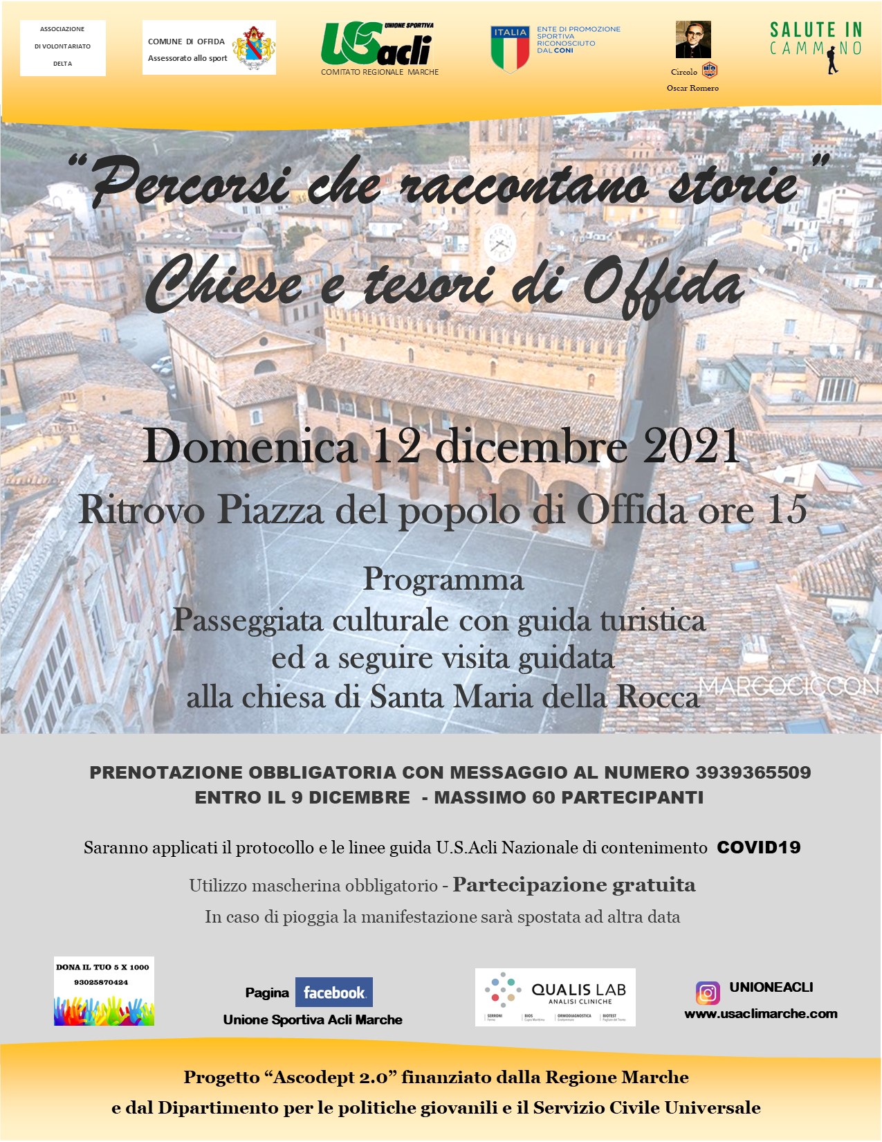 “Chiese e tesori di Offida”, curato dalla guida turistica Valeria Nicu, è inserito nel progetto “ASCODEPT 2.0” di cui è capofila Delta – Odv, finanziato dalla Regione Marche e dal Dipartimento per le politiche giovanili e il Servizio civile universale.