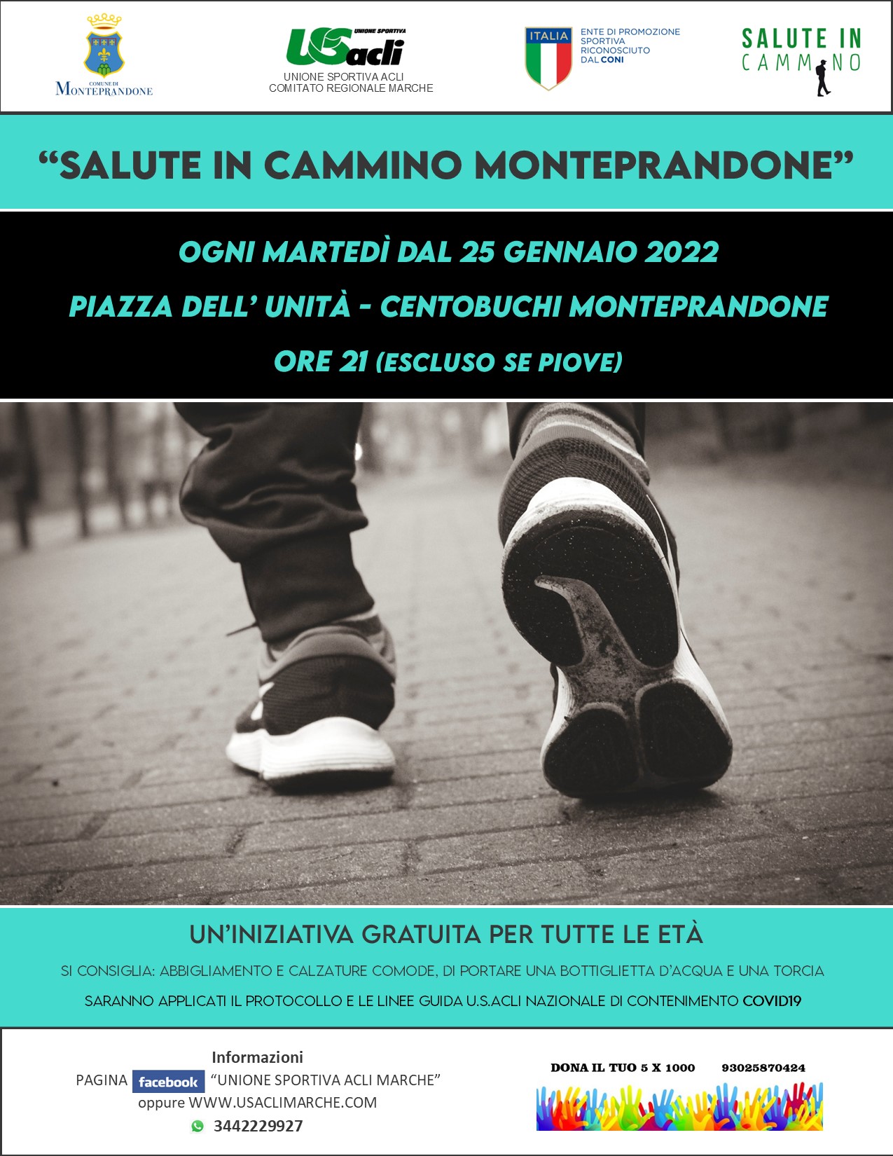 MONTEPRANDONE – Dopo la pausa natalizia, di fine 2021 e di inizio 2022, martedì 25 gennaio riprenderà l’iniziativa “Salute in cammino” che va avanti ormai da più di 8 anni visto che è stato avviato a luglio 2013.