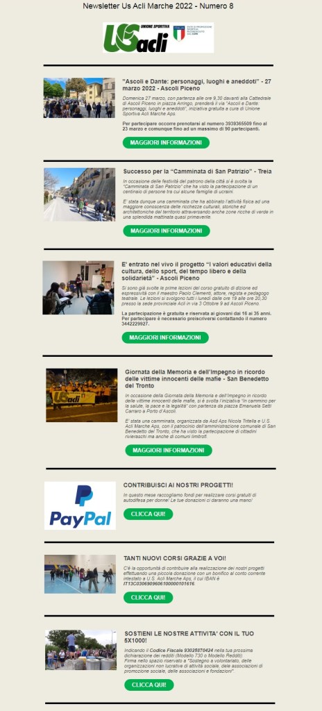 marzo 23, 2022 Unione Sportiva Acli Marche Newsletter n. 8 del 23 Marzo 2022 Condividi: Fai clic per condividere su X (Si apre in una nuova finestra) X Fai clic per condividere su Facebook (Si apre in una nuova finestra) Facebook Mi piace Caricamento... Correlati