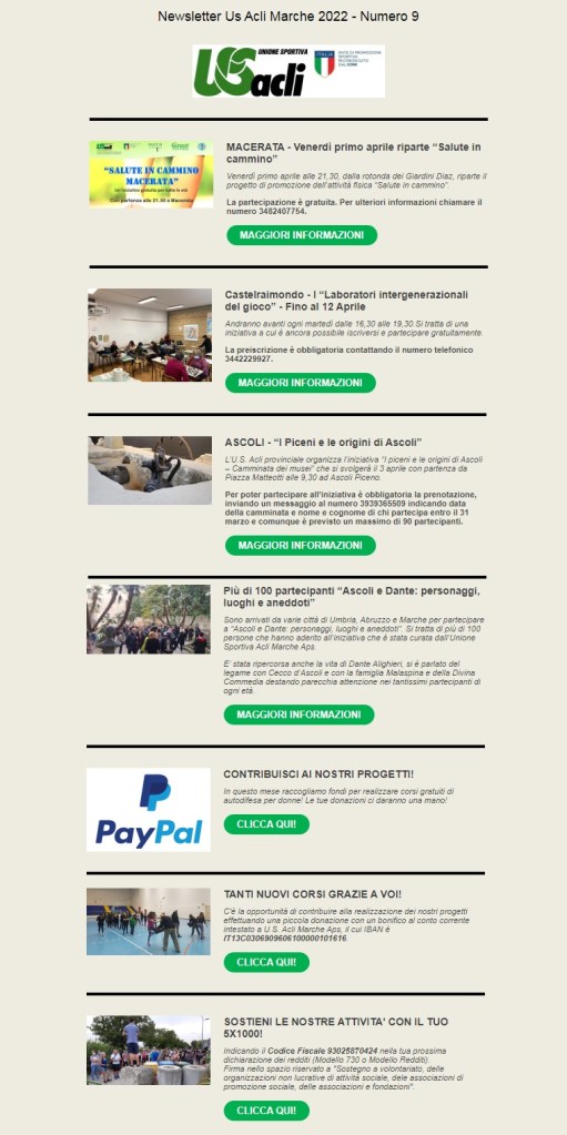 marzo 31, 2022 Unione Sportiva Acli Marche Newsletter n. 9 del 30 Marzo 2022 Condividi: Fai clic per condividere su X (Si apre in una nuova finestra) X Fai clic per condividere su Facebook (Si apre in una nuova finestra) Facebook Mi piace Caricamento... Correlati