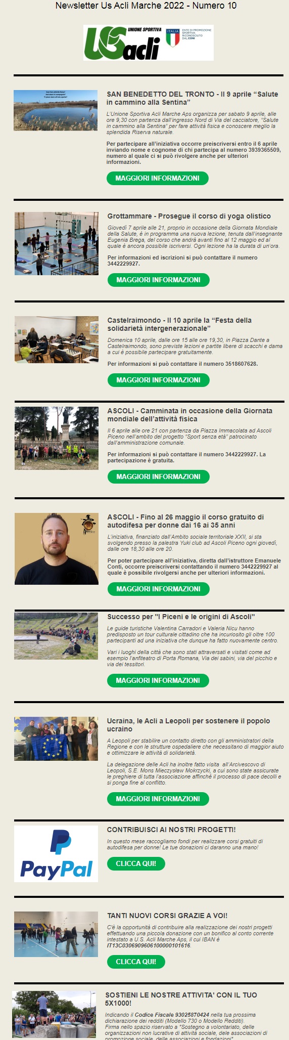 aprile 7, 2022 Unione Sportiva Acli Marche Newsletter n. 10 del 06 Aprile 2022 Condividi: Fai clic per condividere su X (Si apre in una nuova finestra) X Fai clic per condividere su Facebook (Si apre in una nuova finestra) Facebook Mi piace Caricamento... Correlati