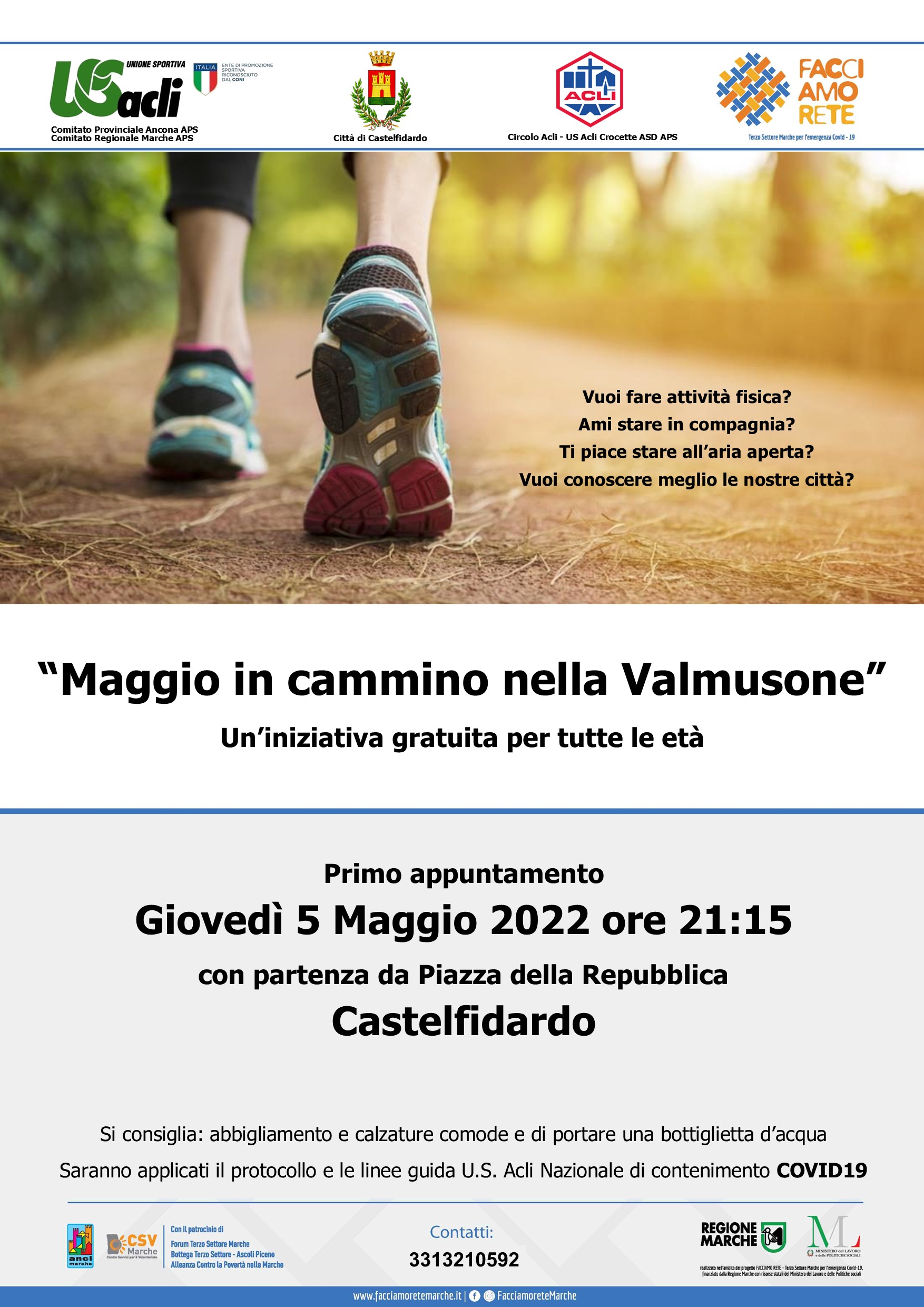CASTELFIDARDO – Giovedì 5 maggio, alle ore 21.15 con partenza da Piazza della Repubblica, prenderà il via “Maggio in cammino nella Valmusone”.