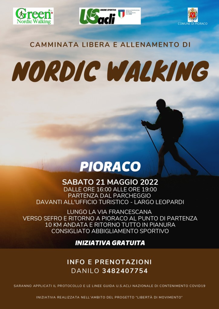 PIORACO – Sabato 21 maggio, dalle ore 16 alle ore 19, è in programma una camminata libera/allenamento di Nordic Walking.