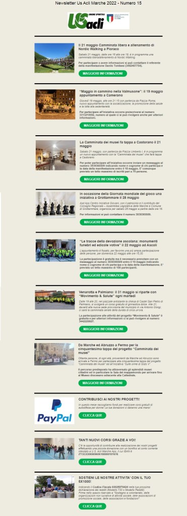 Maggio 20, 2022 Unione Sportiva Acli Marche Newsletter n. 15 del 18 Maggio 2022 Condividi: Fai clic per condividere su X (Si apre in una nuova finestra) X Fai clic per condividere su Facebook (Si apre in una nuova finestra) Facebook Mi piace Caricamento... Correlati