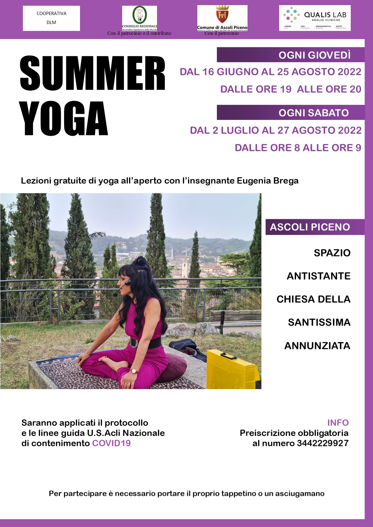 ASCOLI – E’ tutto pronto per la quinta edizione del progetto “Summer Yoga – Laboratori territoriali di prevenzione del tumore al seno”, l’iniziativa che mette a disposizione lezioni gratuite di yoga con l’insegnante Eugenia Brega.