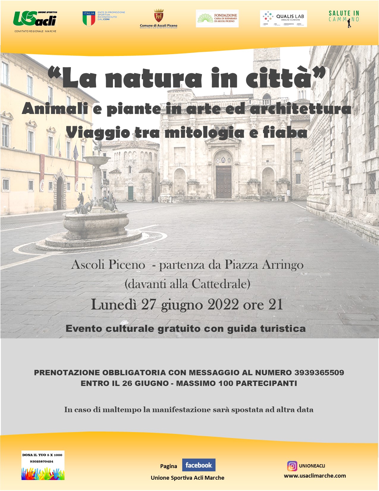 ASCOLI – Terzo appuntamento stagionale, lunedì 27 giugno, con l’iniziativa “Salute in cammino per la cultura” durante la quale si parlerà della natura in città.
