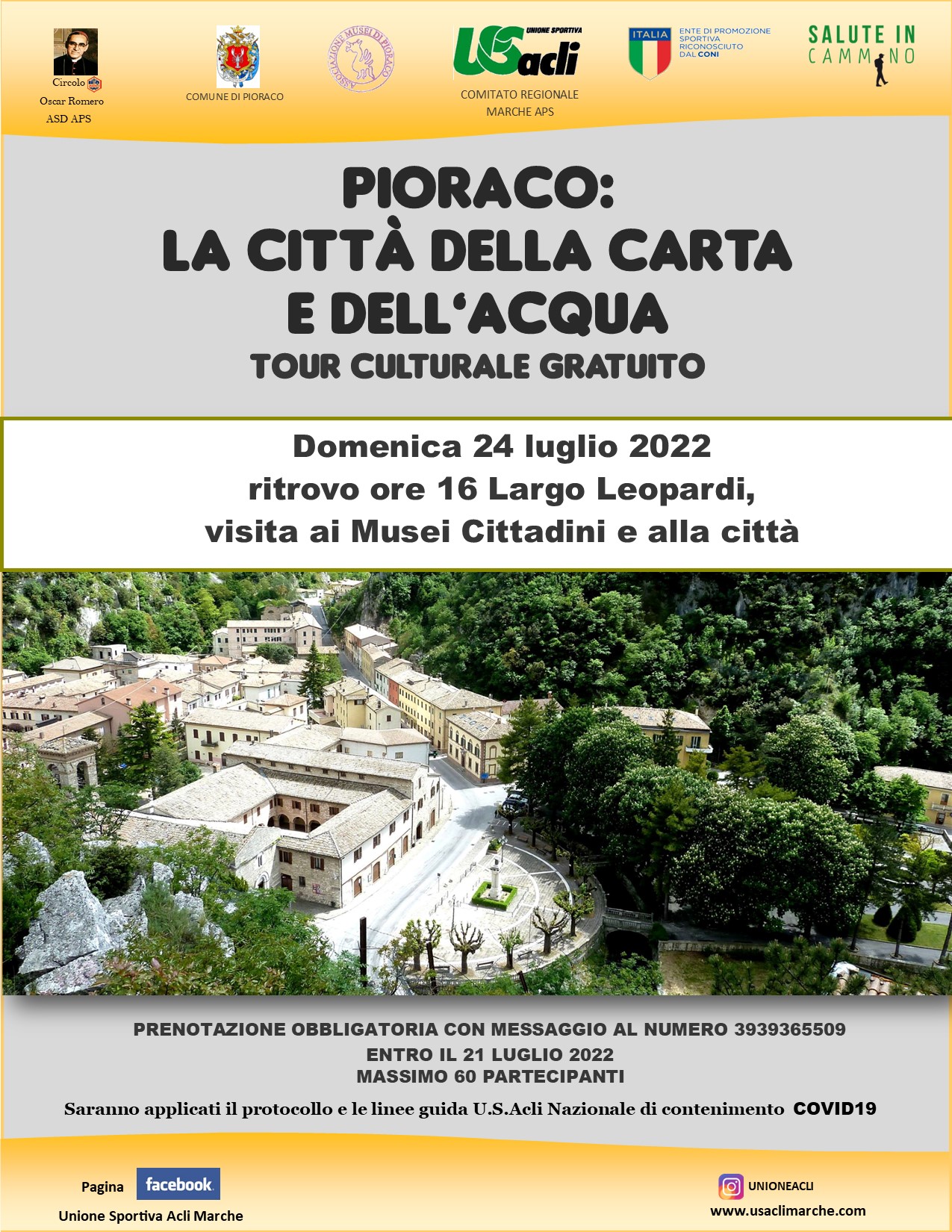 PIORACO – Domenica 24 luglio si svolgerà l’iniziativa culturale “La città della carta e dell’acqua” promossa da Circolo Acli Oscar Romero Aps Asd.