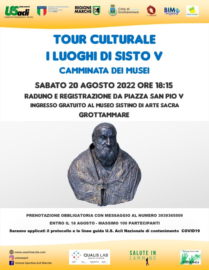 Il programma dell’iniziativa prevede il ritrovo dei partecipanti alle ore 18,15 ed a seguire un percorso culturale dedicato a Sisto V, di cui nel 2021 è stato festeggiato il cinquecentenario della nascita, fino ad arrivare alla zona alta di Grottammare. A seguire si potrà accedere al Museo sistino di arte sacra.