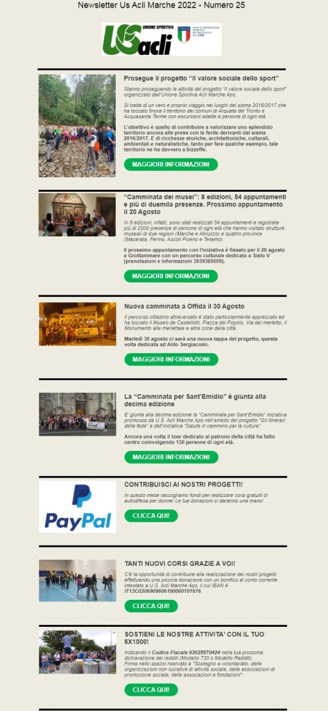 agosto 17, 2022 Unione Sportiva Acli Marche Newsletter n. 25 del 17 Agosto 2022 Condividi: Fai clic per condividere su X (Si apre in una nuova finestra) X Fai clic per condividere su Facebook (Si apre in una nuova finestra) Facebook Mi piace Caricamento... Correlati